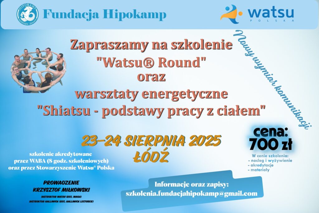 23-24.08.2025 r. Łódź – „Watsu Round” oraz warsztaty energetyczne „Shiatsu – podstawy pracy z ciałem”.